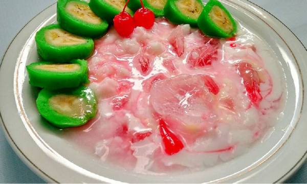 Cemilan Jumat, 3 Juni 2022 Jajanan Cemilan Es Pisang Ijo di Malang Es pisang hijau yang menyegarkan ini sangat sesuai dinikmati dikala berbuka puasa.